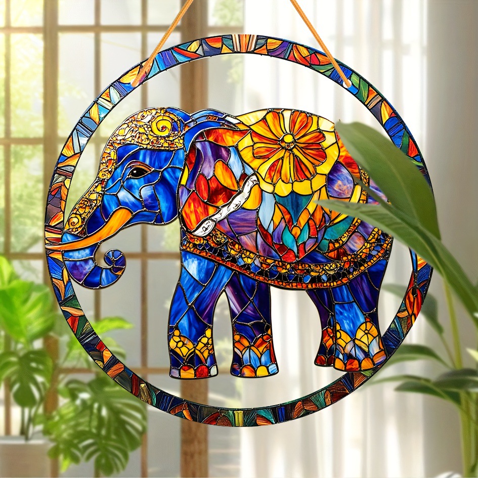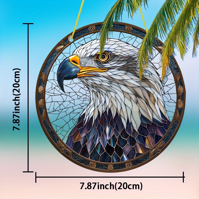 1ピース、8インチx 8インチラウンドアクリルイーグルサンキャッチャー、ステンドグラススタイル窓