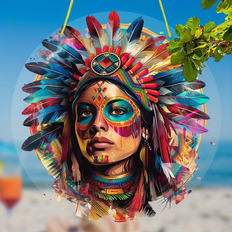 1pc夢のネット、アクリルマーク、インド女性の頭、暖かい生き生きとした色、円形