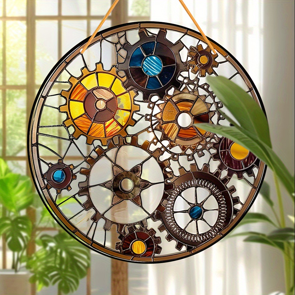 レトロな風車のドリームキャッチャー2Dアクリルサイン - カラフルなガラス風ウィンドウハンギング
