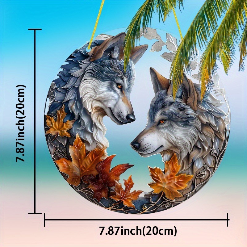 1pcドリームキャッチャー、アクリルマーク、オオカミ、ステンドグラス窓吊り下げ、ラウンドマーク、窓