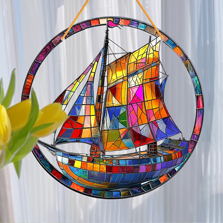 1件、巨大帆船船アクリル太陽捕獲器(8「x 8」) 、カラー窓装飾