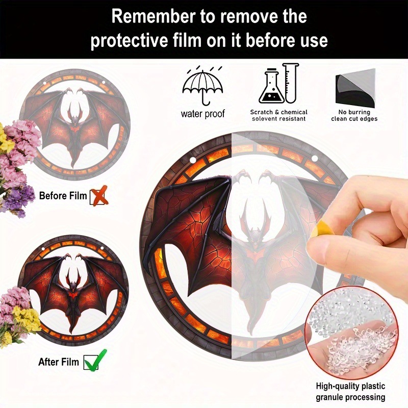 1件吸血コウモリアクリル捕夢網-絵画ガラス風窓吊り、円形装飾