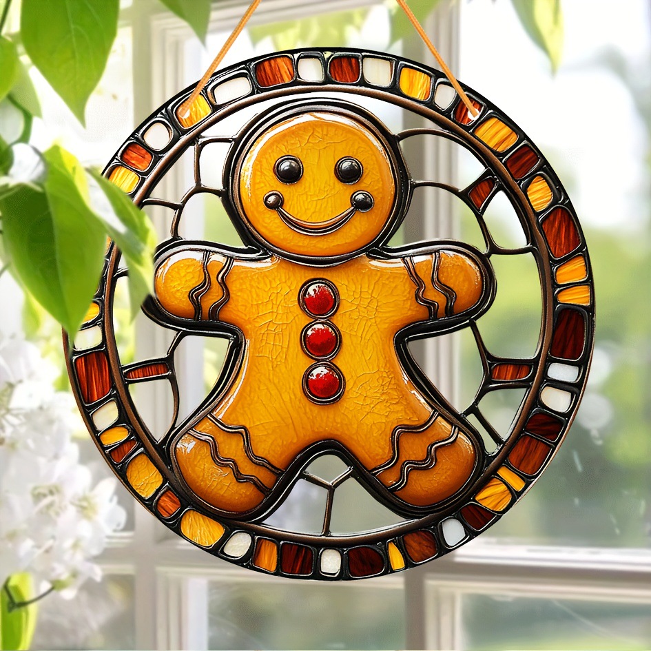 1ピース祭りジンジャー男性ステンドグラスキャッチャー (8インチx 8インチ)- 鲜やかなプッシャー