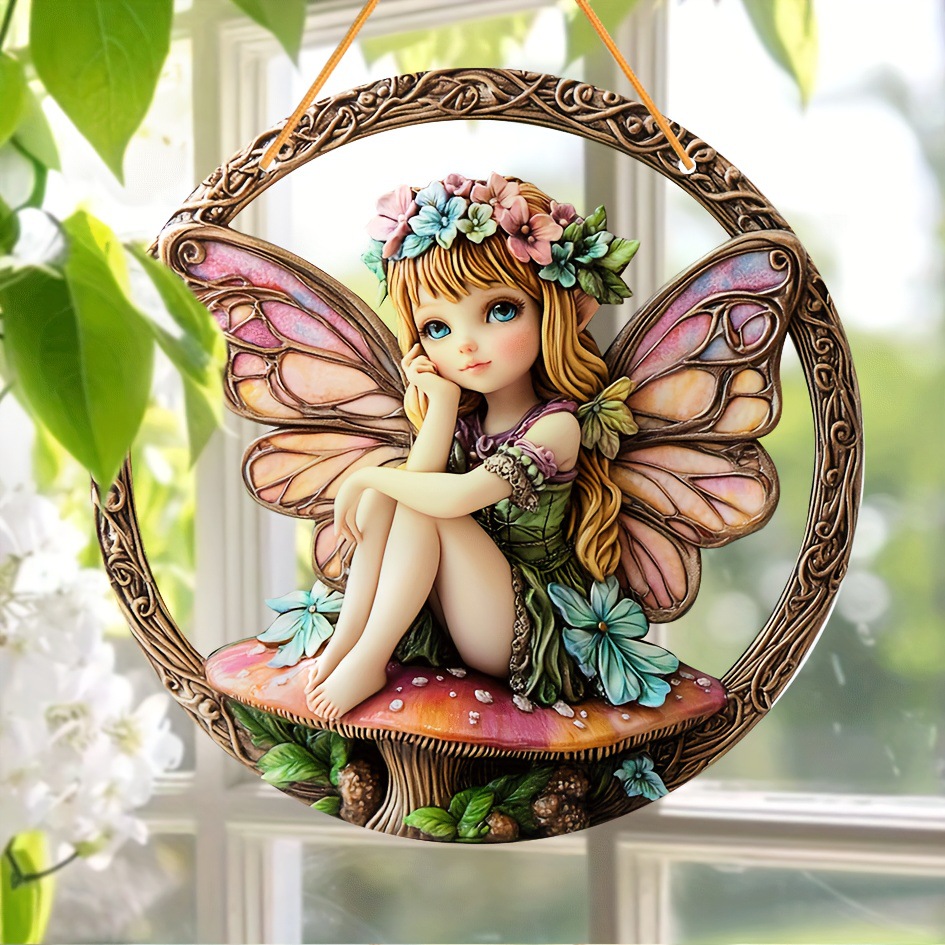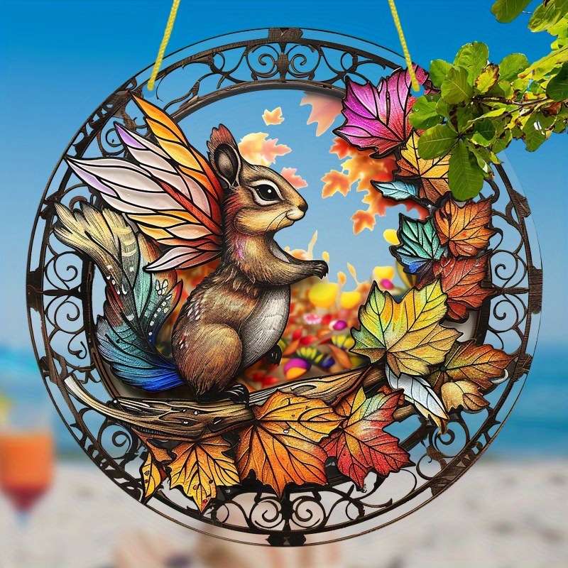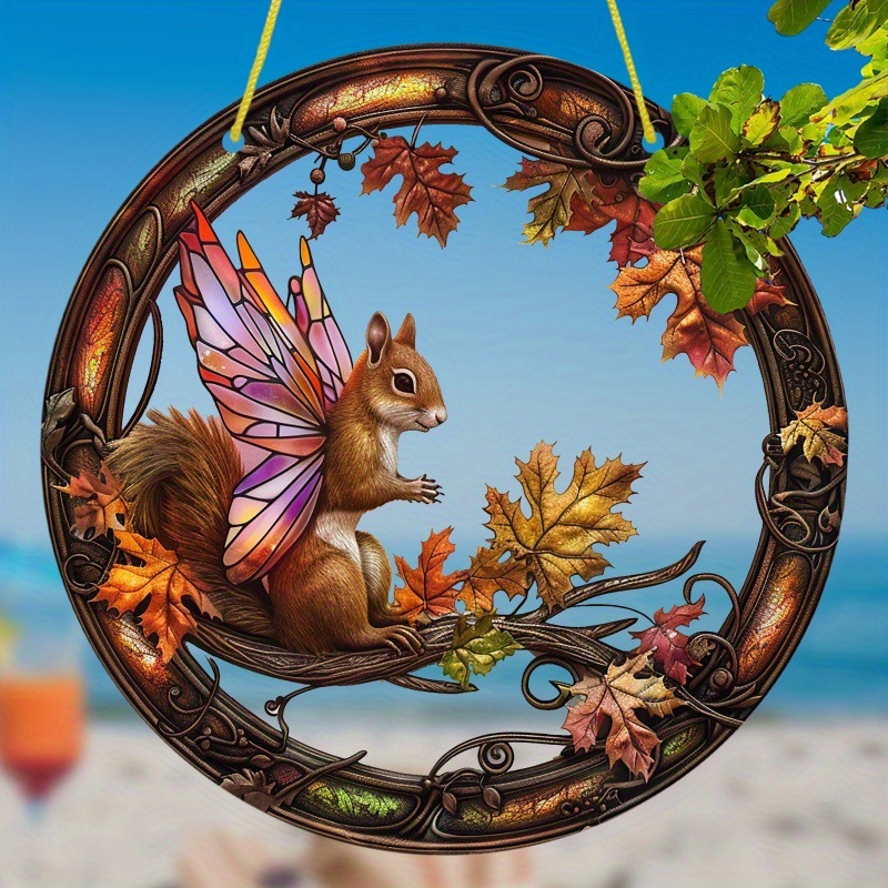 1pc夢想者、アクリルマーク、リスの羽付き、カラーガラス窓吊り、円形マーク