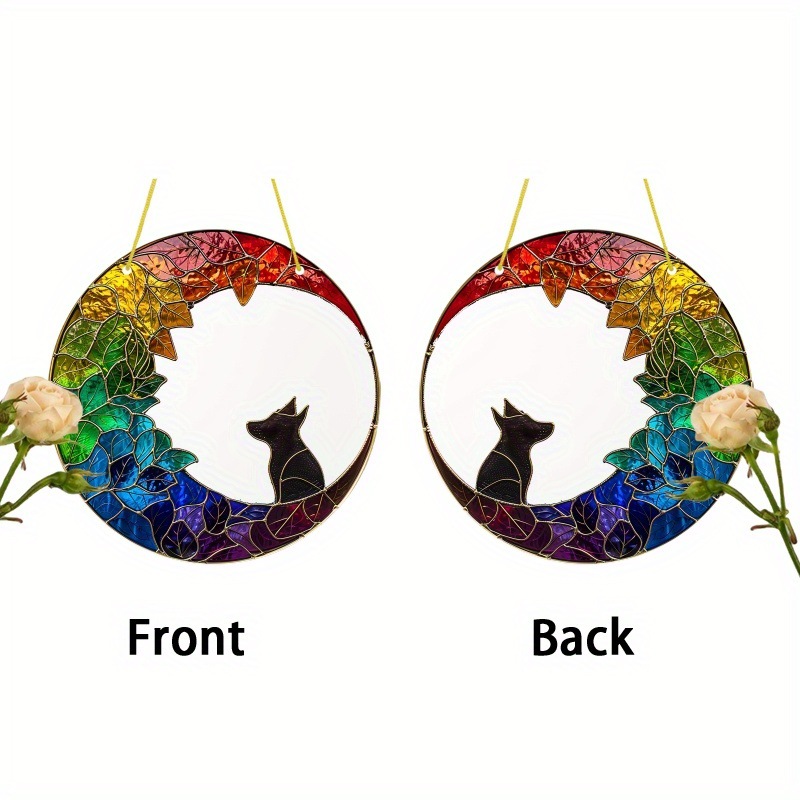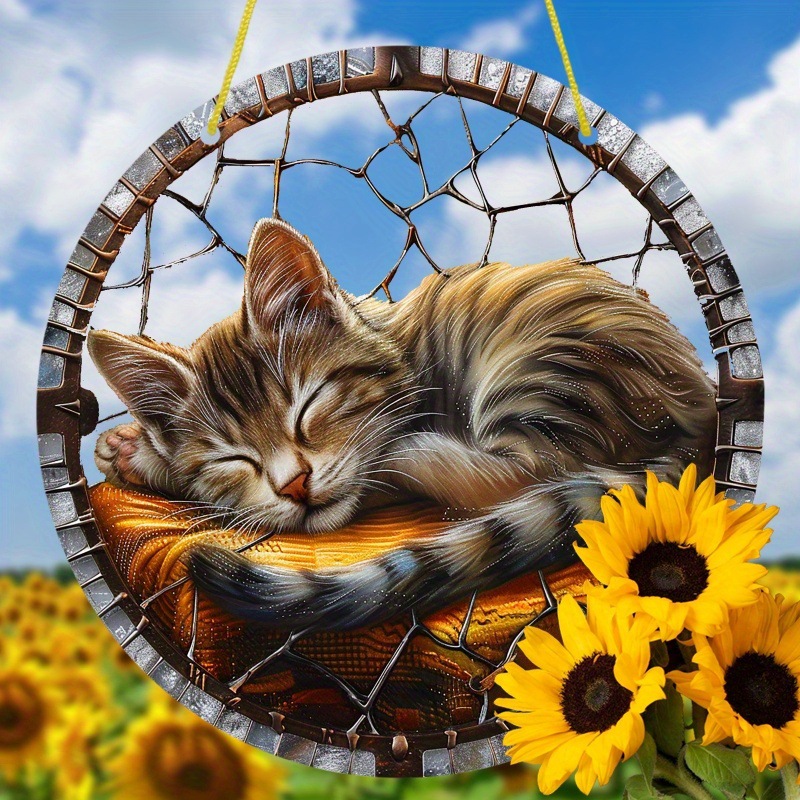 1pcドリームキャッチャー、アクリルマーク、寝猫、カラーガラス窓吊り、円形マーク、窓