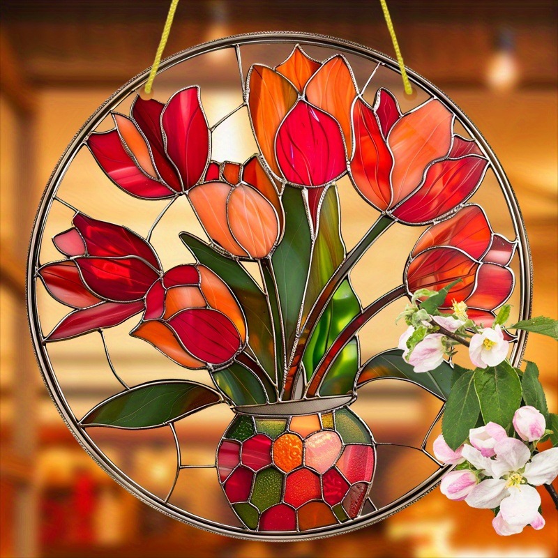 1pcドリームキャッチャー、アクリルマーク、花瓶、ステンドグラスの窓掛け、ラウンドマーク、