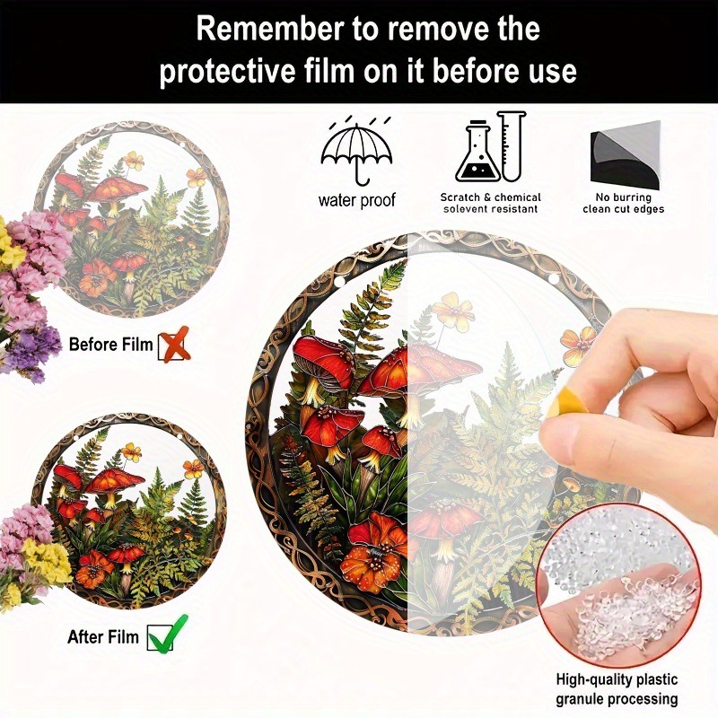 1pc夢想者、アクリルマーク、野生キノコ、カラーガラス窓吊り、円形マーク