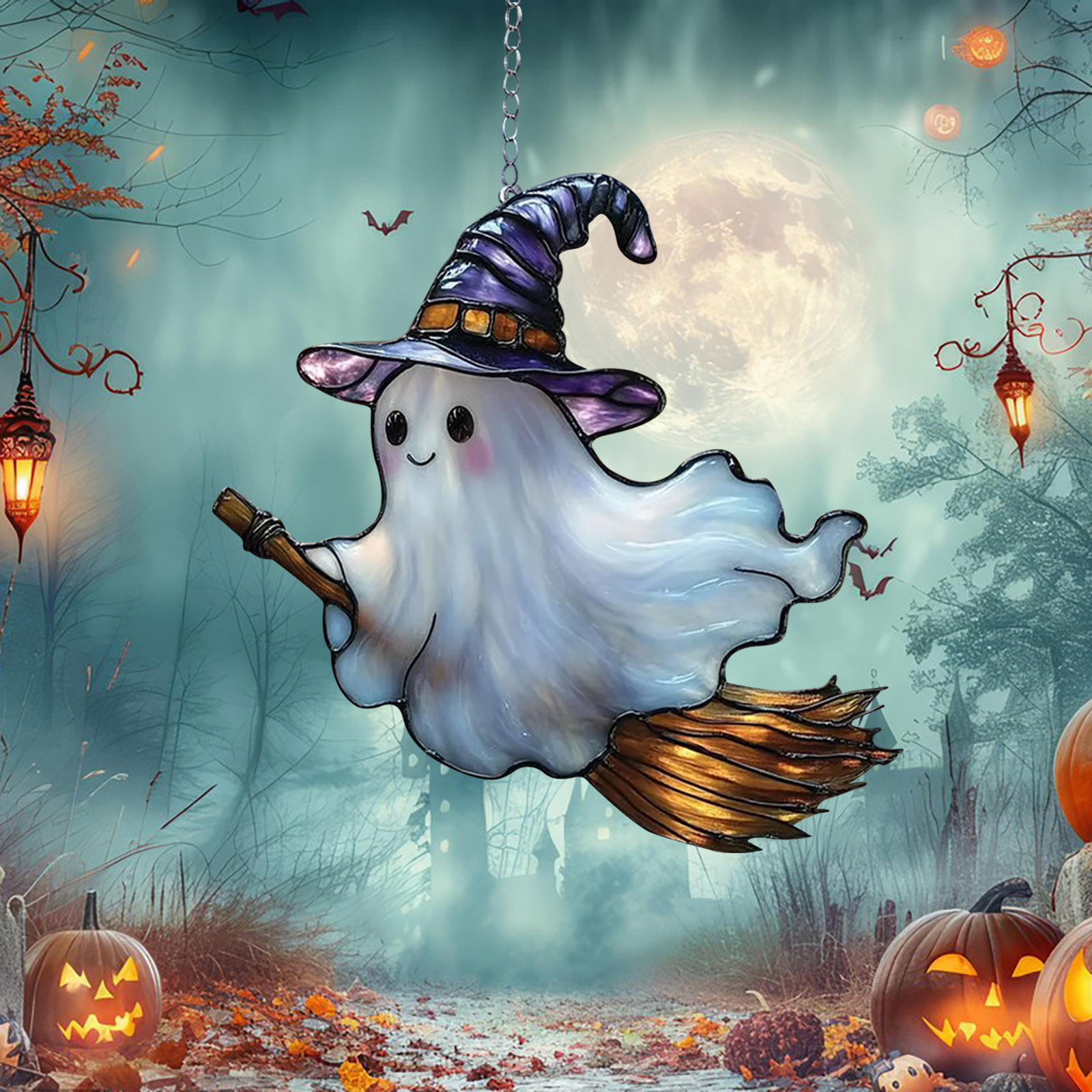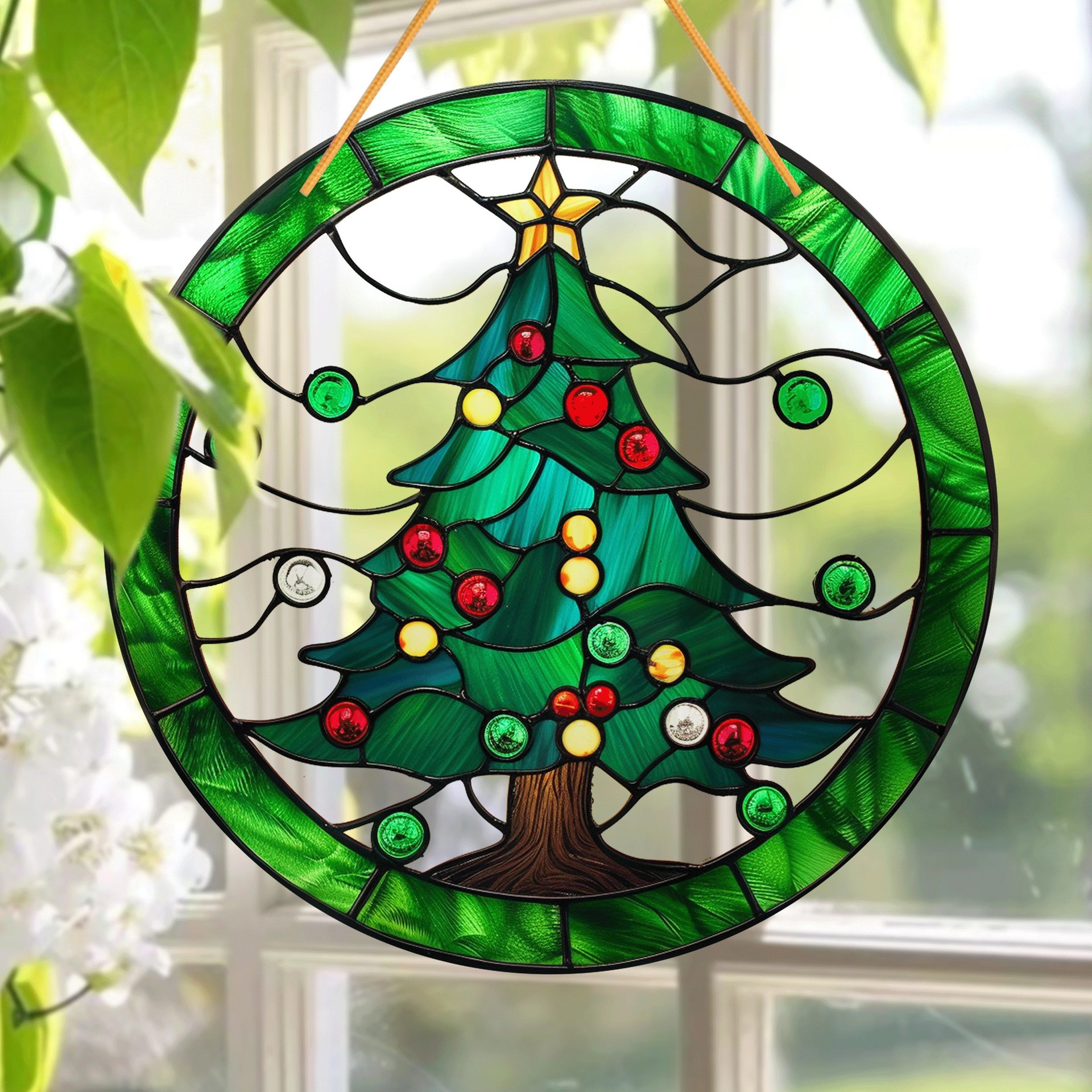 1ピース祭りクリスマスツリーキャッチャー (8インチx 8インチ)- 鲜やかなステンドグラスのスタイル