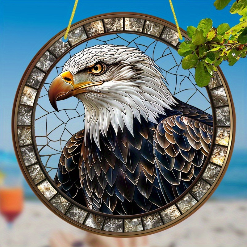 ハゲワシの夢網のアクリルマーク-絵画ガラス風の窓がぶら下がっていて、丸い家が飾られています。