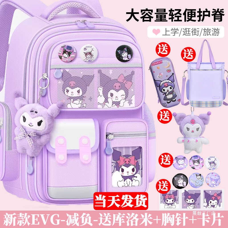 新しい 2025 ライブラリバッグ 小学生女子 1-3-6 年生用 防水 ロミ 子供 プリンセス パープル かわいい 5