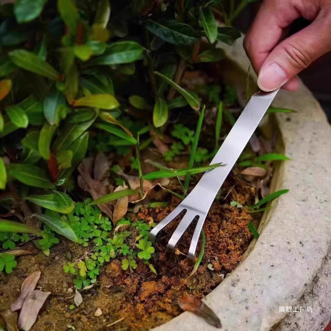新しい盆栽くし、双頭ステンレス土圧搾ナイフ、手作り盆栽用の芽摘み兼用くし土ほぐしツール