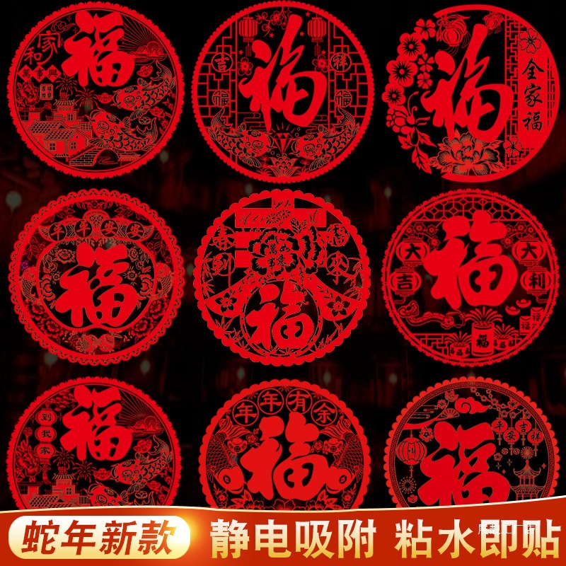 2025年新年装飾祝福ウィンドウステッカー蛇年春祭り静電ガラスステッカードアステッカー壁ステッカー新年アレンジメント