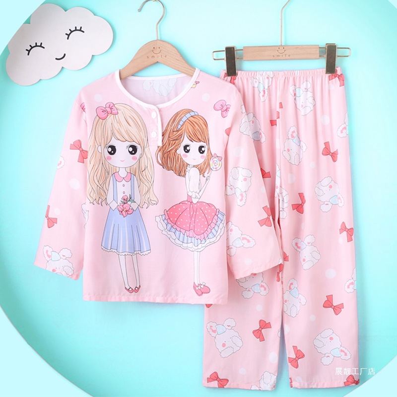 女の子用パジャマ 2022 新しい夏と秋のアイスシルク薄い中型および大型ベビーカジュアルホーム服 9 分袖空調服