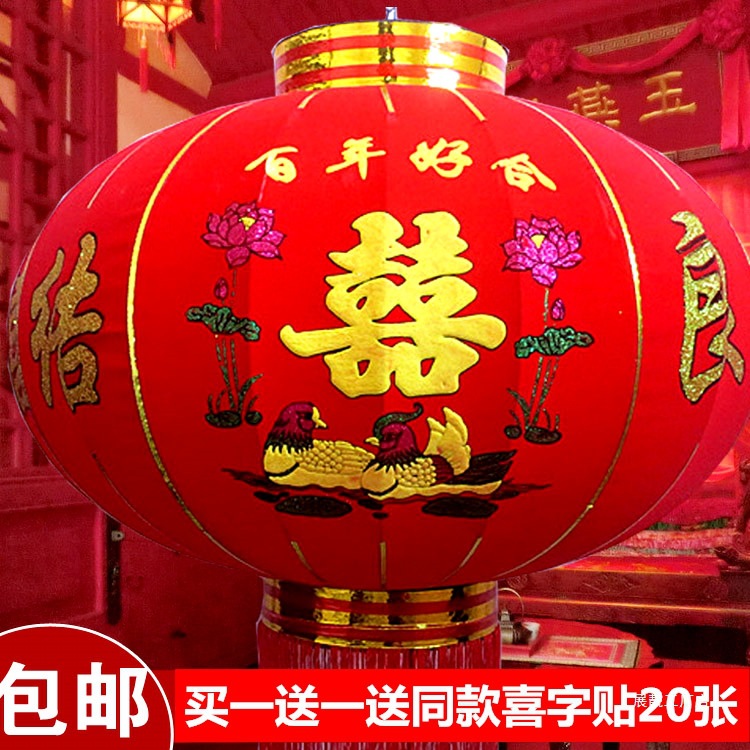 ウェディングランタン、ウェディングハッピーワード、大きな赤いランタン、植毛ランタン、新年バルコニー屋外ドアランタン、中国風宮殿ランタン