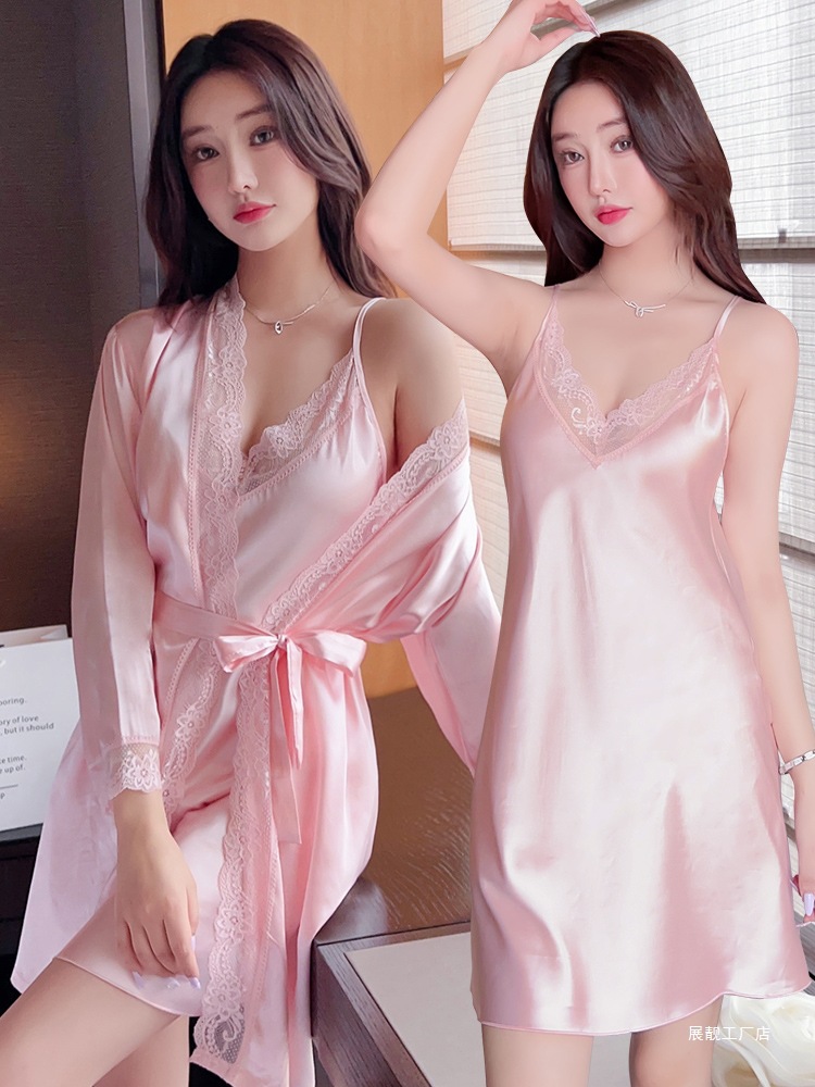 2025 春と秋の新作セクシーなパジャマ女性の夏のアイスシルク薄いパジャマサスペンダーピュアディザイアスタイルネグリジェツーピーススーツ