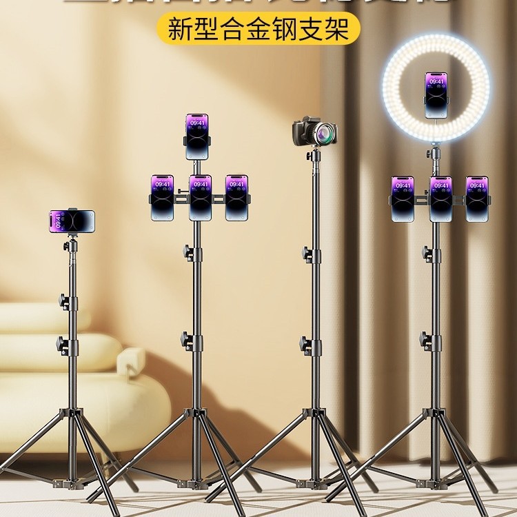 携帯電話ホルダー、ライブブロードキャスト専用自撮り棒三脚、補助光付き、写真撮影用アーティファクト、撮影用三角サポートスタンド20