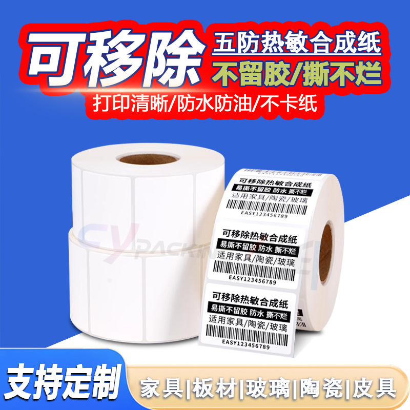 熱ラベル紙は破れません、5つの耐性、取り外し可能な粘着剤40*30家具ガラス防水合成紙ラベル
