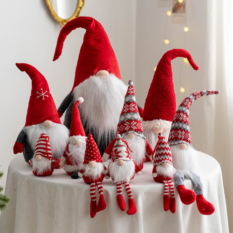 国境を越えて人気のあるクリスマスの顔のない老人の人形がクリスマスの装飾品を飾っている北欧の小人ルドルフ