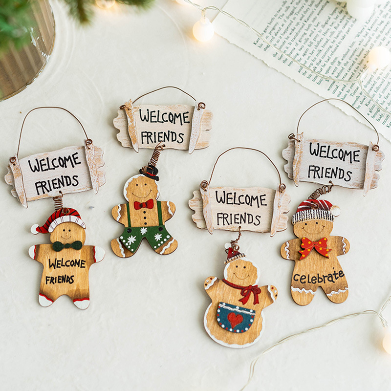 クリスマスの木製のジンジャーパイ人の装飾のペンダントジンジャーパイ人の歓迎の表札の扉はクリスマスツリーのビスケット人の装飾を飾ります。