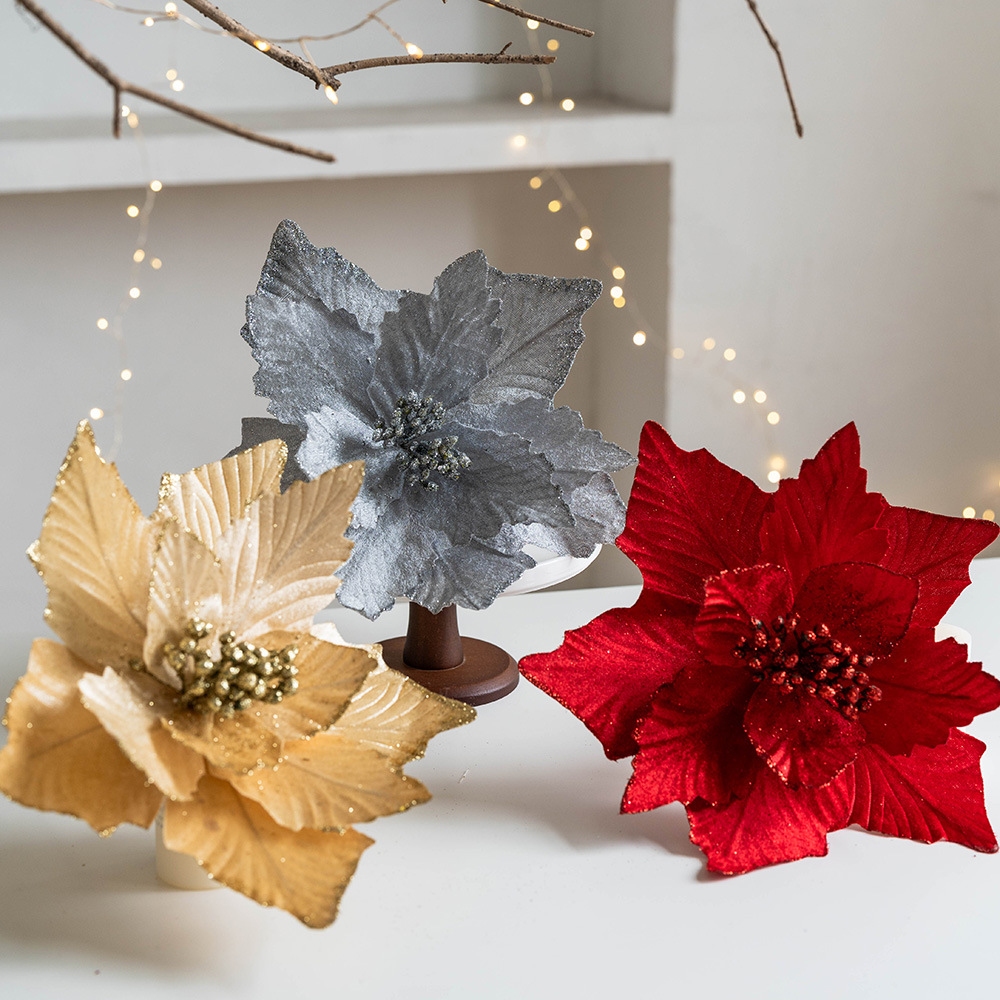 クロスボーダー模造花クリスマス花クリスマス装飾品金色の赤いベルベットクリスマス花クリスマスツリーアクセサリー