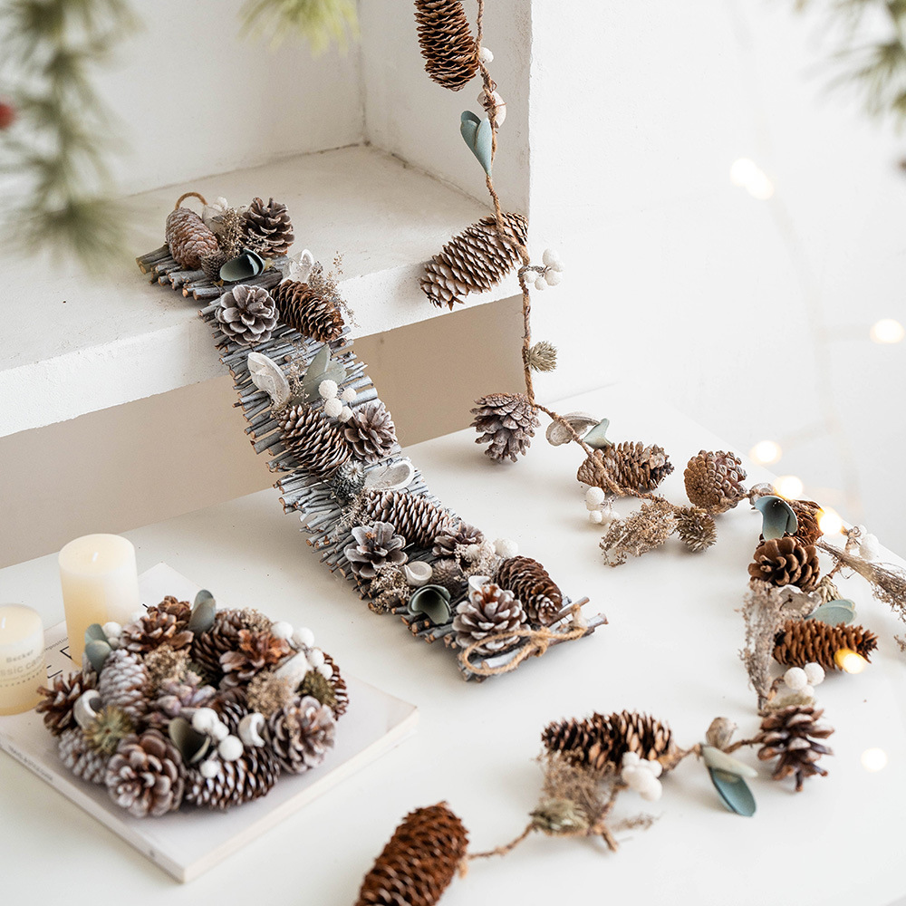 北欧田園天然松果装飾品松果藤条花輪クリスマステーブル飾りショーウインドー配置