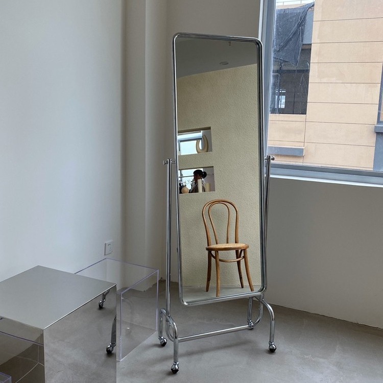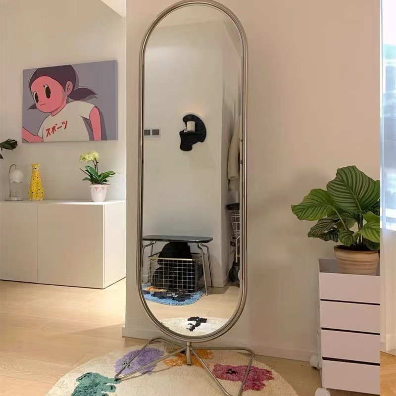 北欧デザイナー全身鏡、ファッショナブルなドレッシングミラー、取り外し可能なステンレス製衣類スタジオフロアスタンドミラー