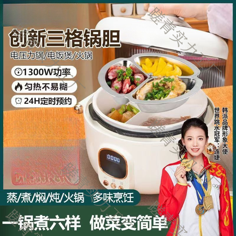 新型韓派三格電気圧力鍋家庭用知能高圧力炊飯器オシドリ胆鍋圧力鍋ハイエンド