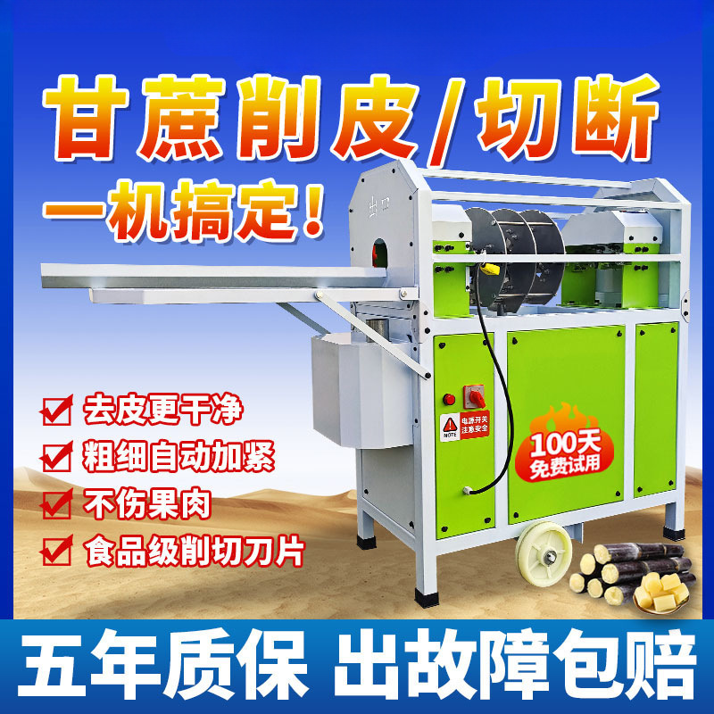 小型サトウキビの皮むき切り一体機の屋台は手作業で皮をむいて切ります。サトウキビを剃って全自動機械を切断します。