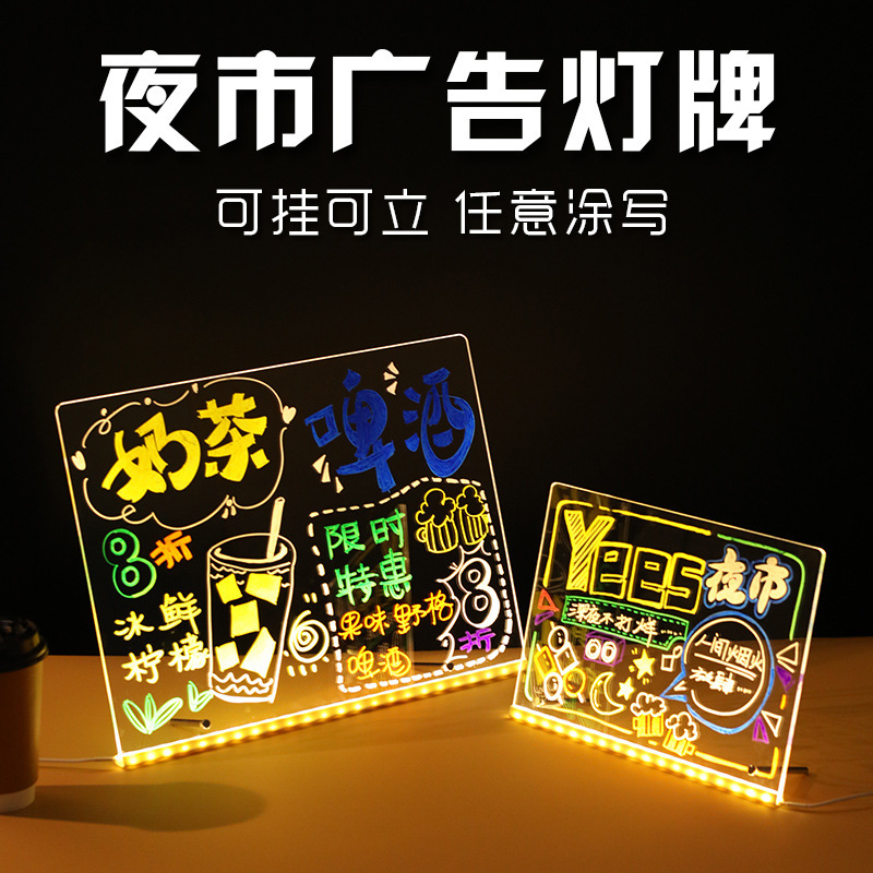 拭き取り可能な透明な発光小さな黒板露店アクリル発光看板書き込みボード電子手書き蛍光板