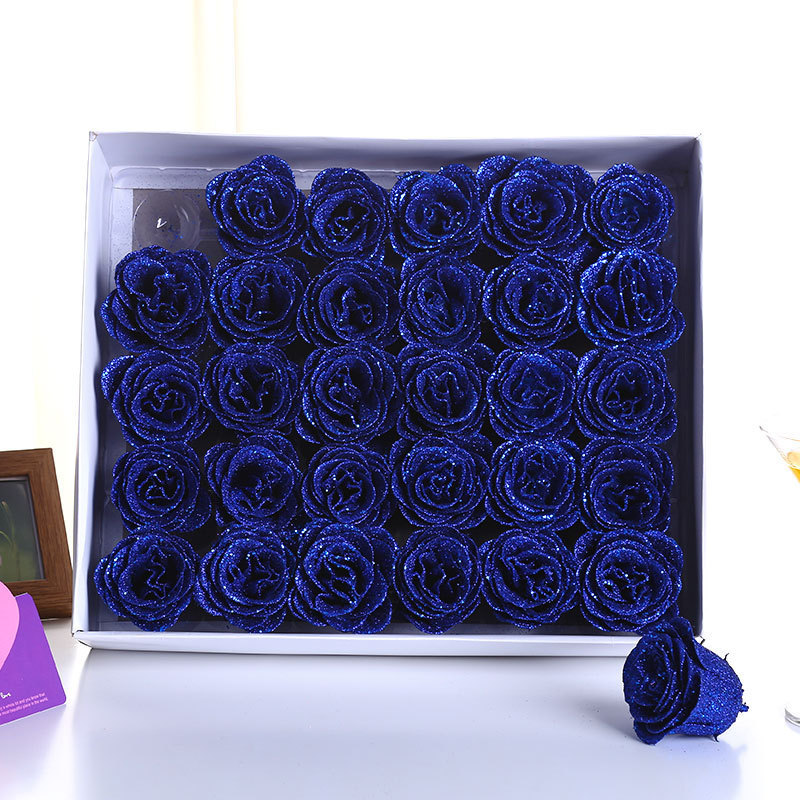 ゴールドパウダークリスタルブルーローズヘッドソープフラワーブルーエンチャントレス造花永遠のフラワーショップ素材包装手作り