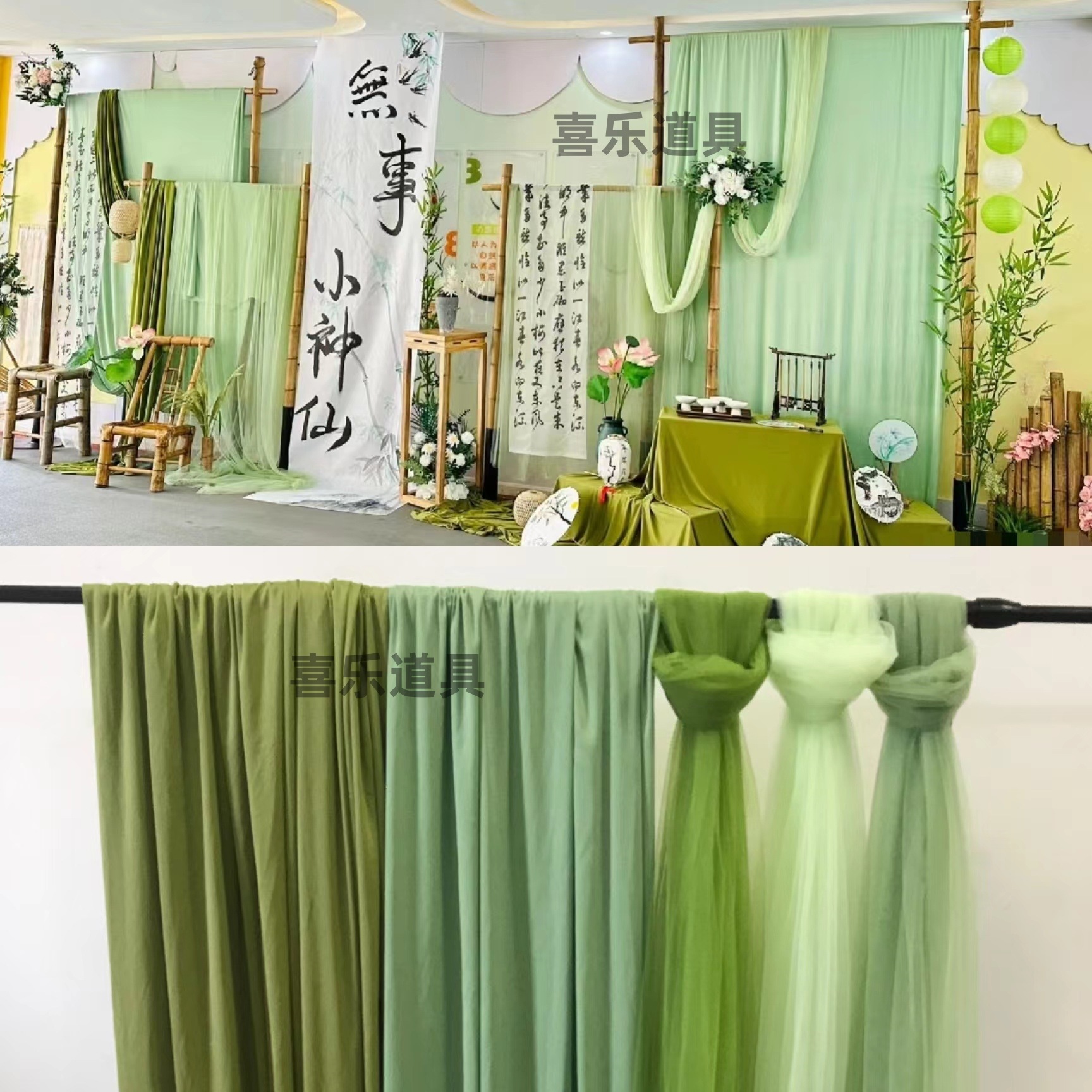 グリーンガーゼ中国風チュール幼稚園環境創造アボカドグリーンメッシュ結婚式の背景生地ソフトガーゼ