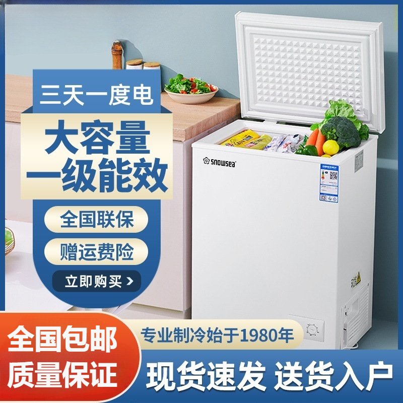 冷凍品を並べて屋台の冷凍庫を並べます。小型家庭用商用大容量減霜全冷凍冷蔵庫の省エネ・節電