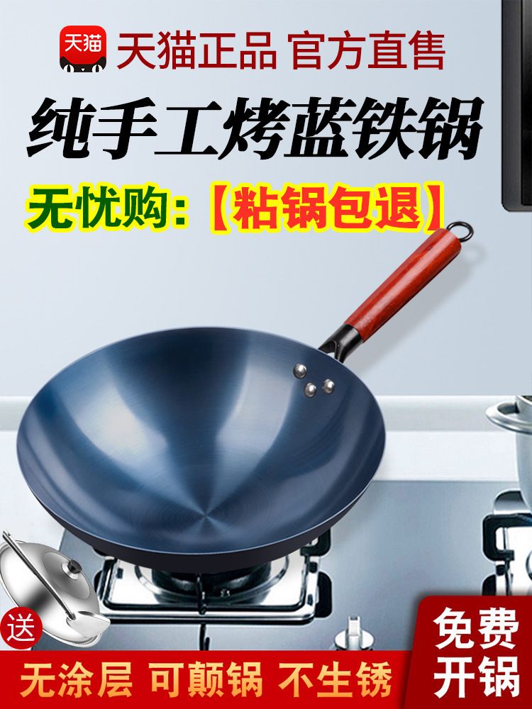 章丘手作り鉄鍋炒め鍋家庭用公式フラッグシップストアの古い純粋な炒め鍋は、鍋の商用コーティングがない