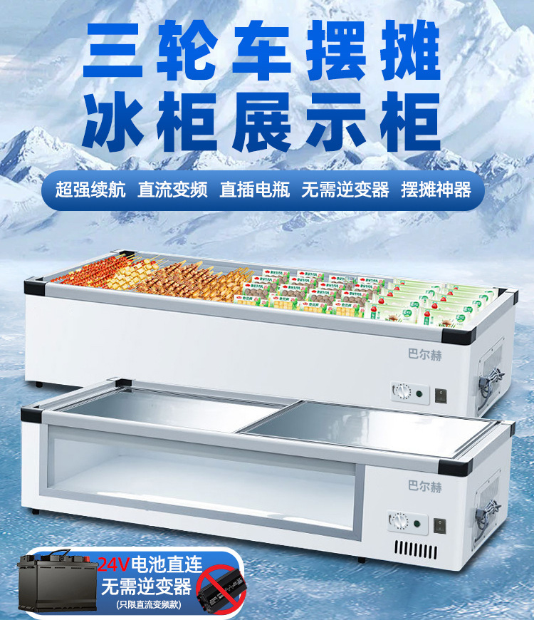 屋台の冷蔵庫の冷蔵庫のデスクトップの夜市の冷蔵展示棚のバーベキューの串の冷凍の小型三輪車