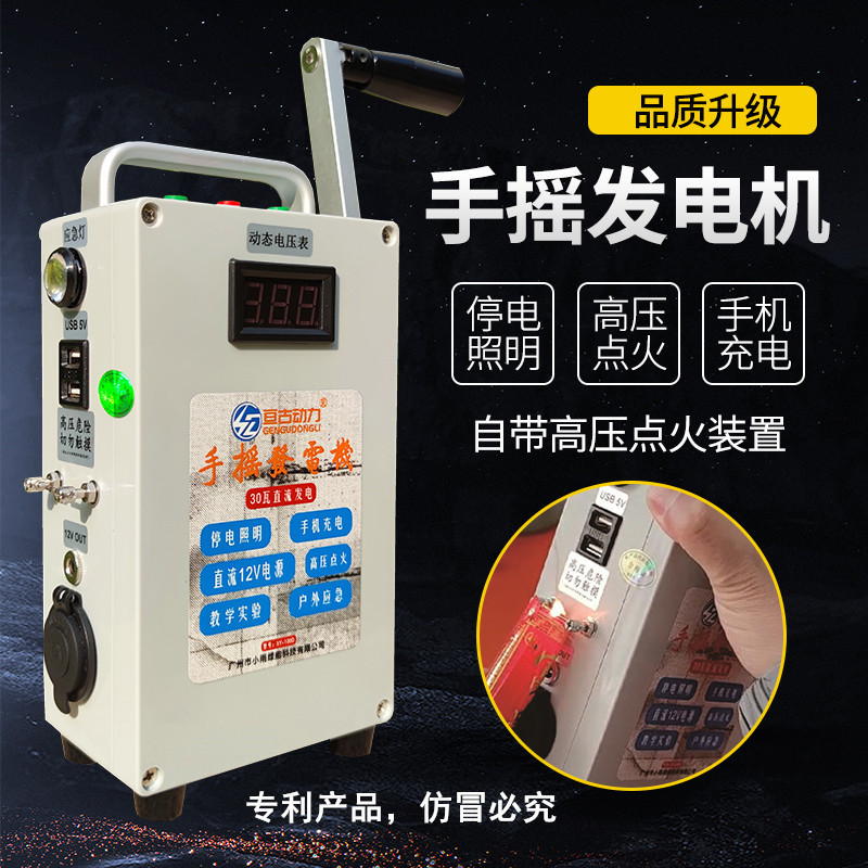 手回し発電ハイパワー高圧点火携帯電話充電ハイライト照明屋外緊急12V携帯電源