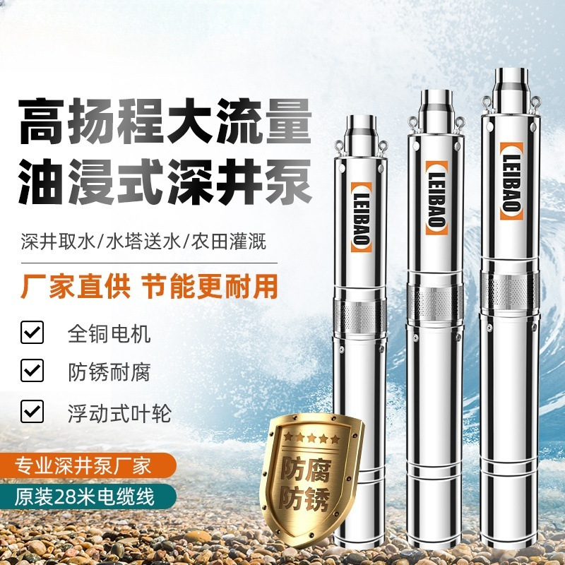 深井ポンプ220Vステンレス潜水ポンプ家庭用井戸水揚水単三相380V耐砂高揚程揚水ポンプ