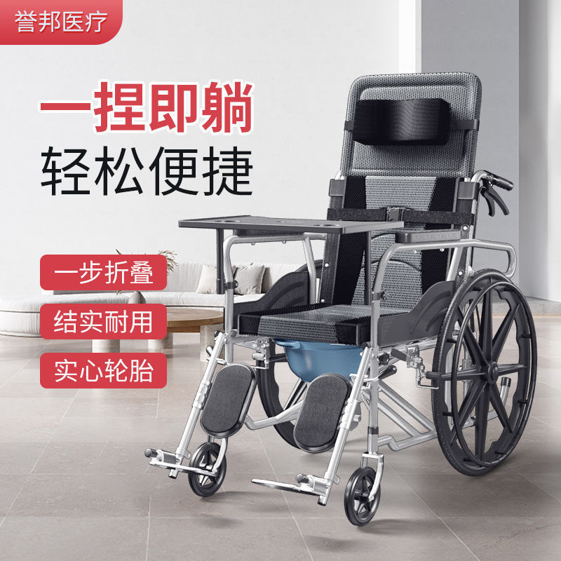 手で車椅子を押す老人は折り畳み可能で軽い小型病院と同じタイプの便器を持って足を上げることができます。