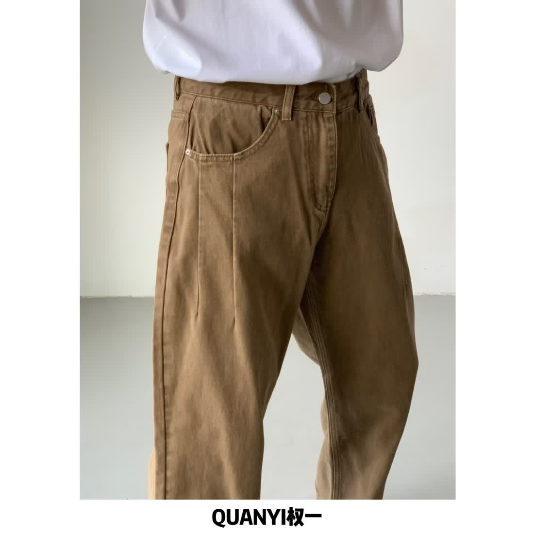 大衆デザイン感水洗い工装長ズボン高街広脚