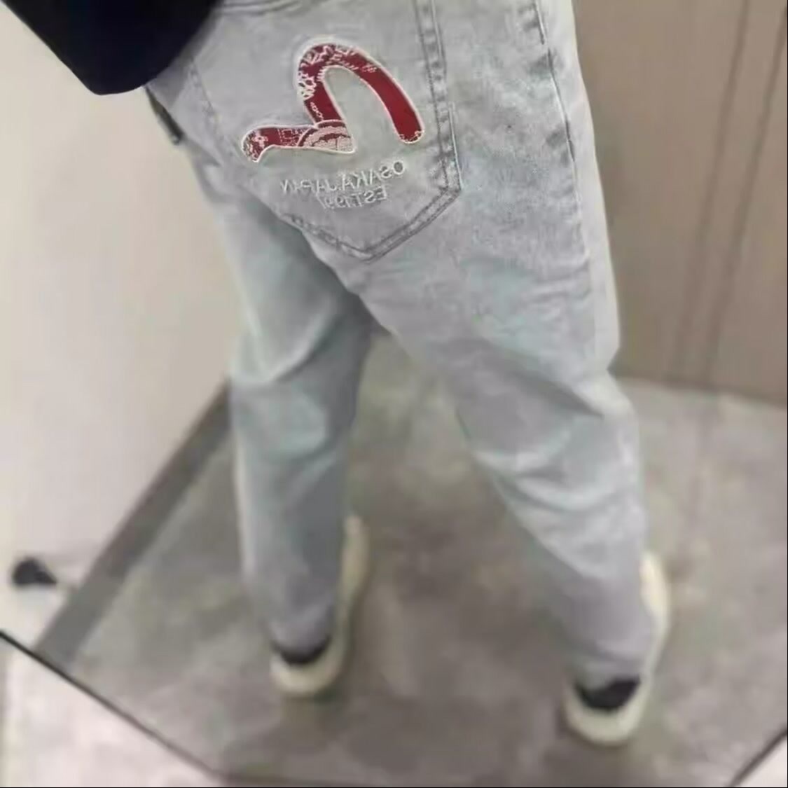 ジーパンのネットの赤い爆発の男の金の夏の潮流の刺繍のアルファベットの図案は格好いいまっすぐな筒のカジュアルなズボンを修理します。