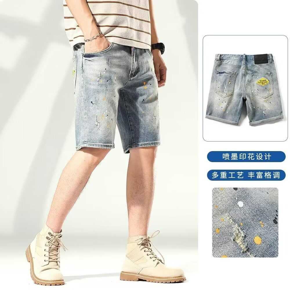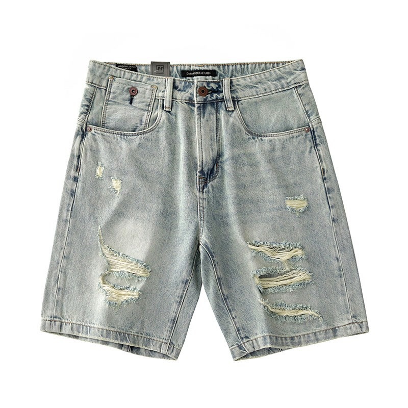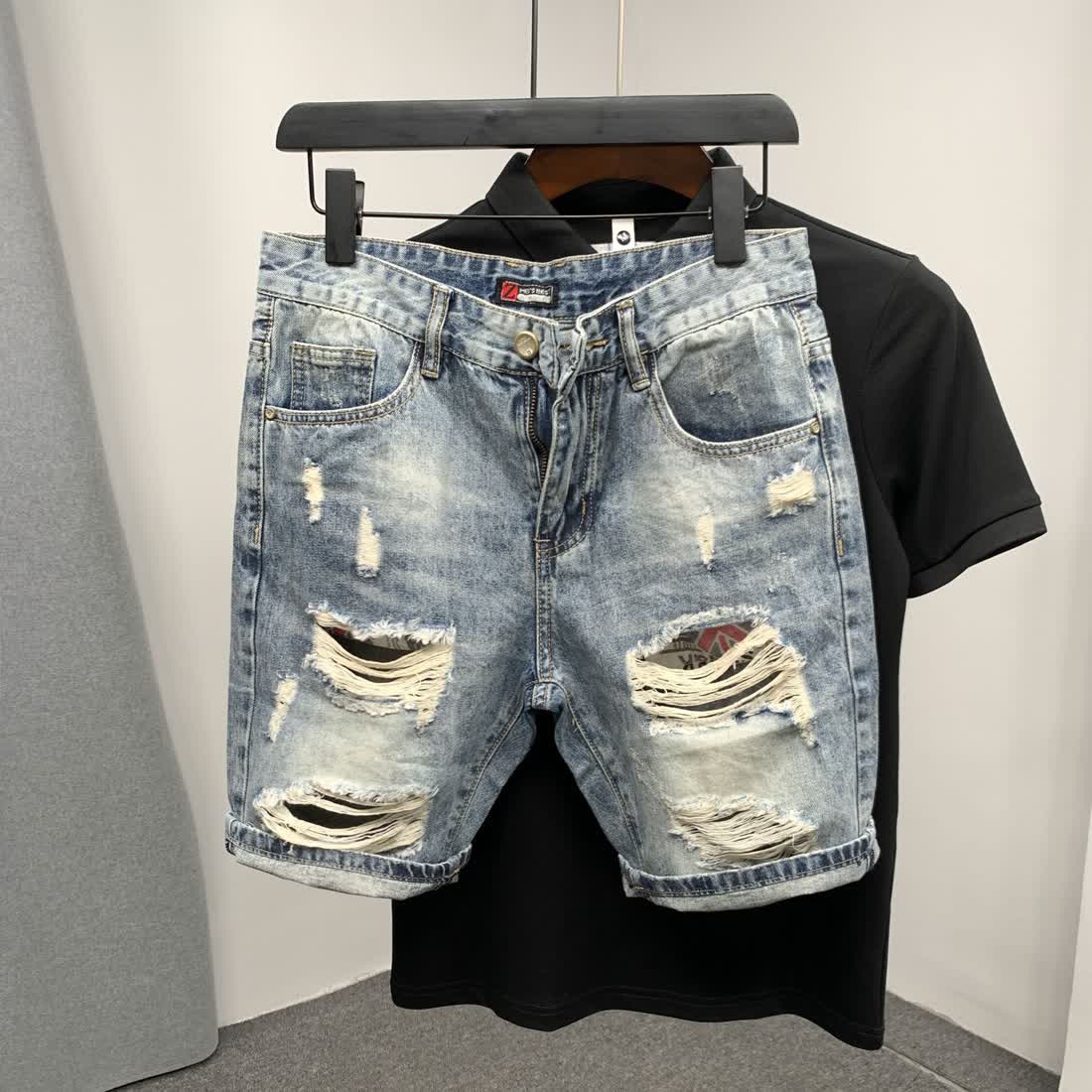 夏の新しい穴のパッチのデニムの半ズボンの男性