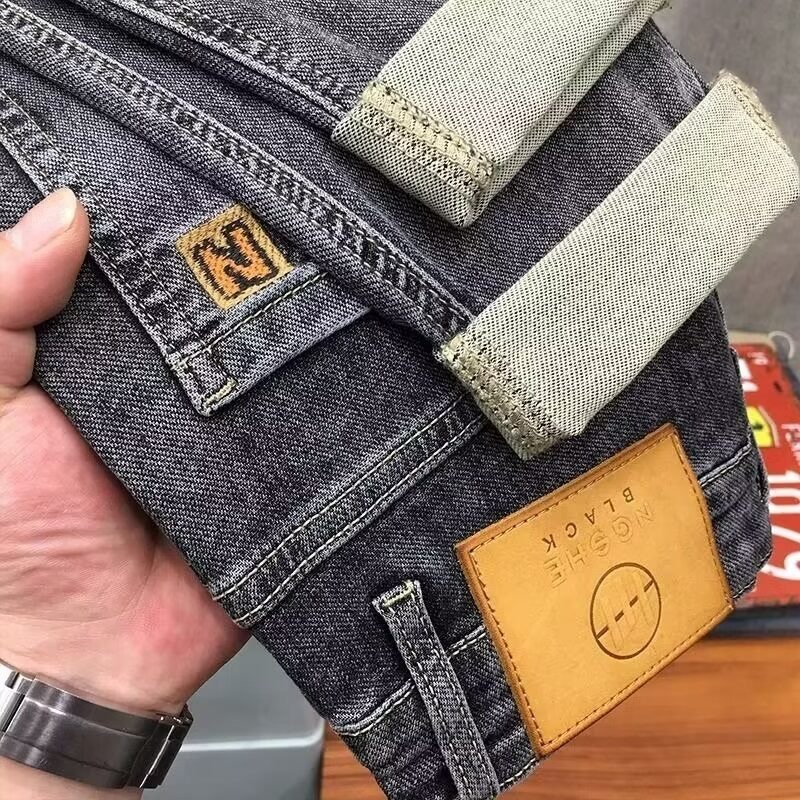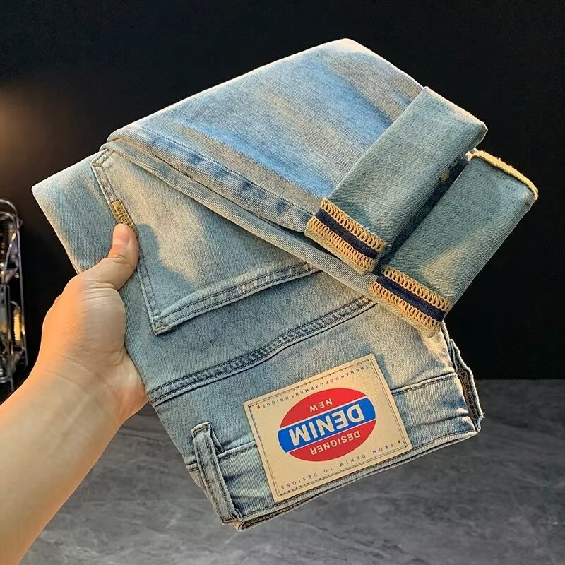 2024ファッション足つきジーンズ男性春秋デザイン感工装レトロ長ズボン修身アメリカ式ジーンズ