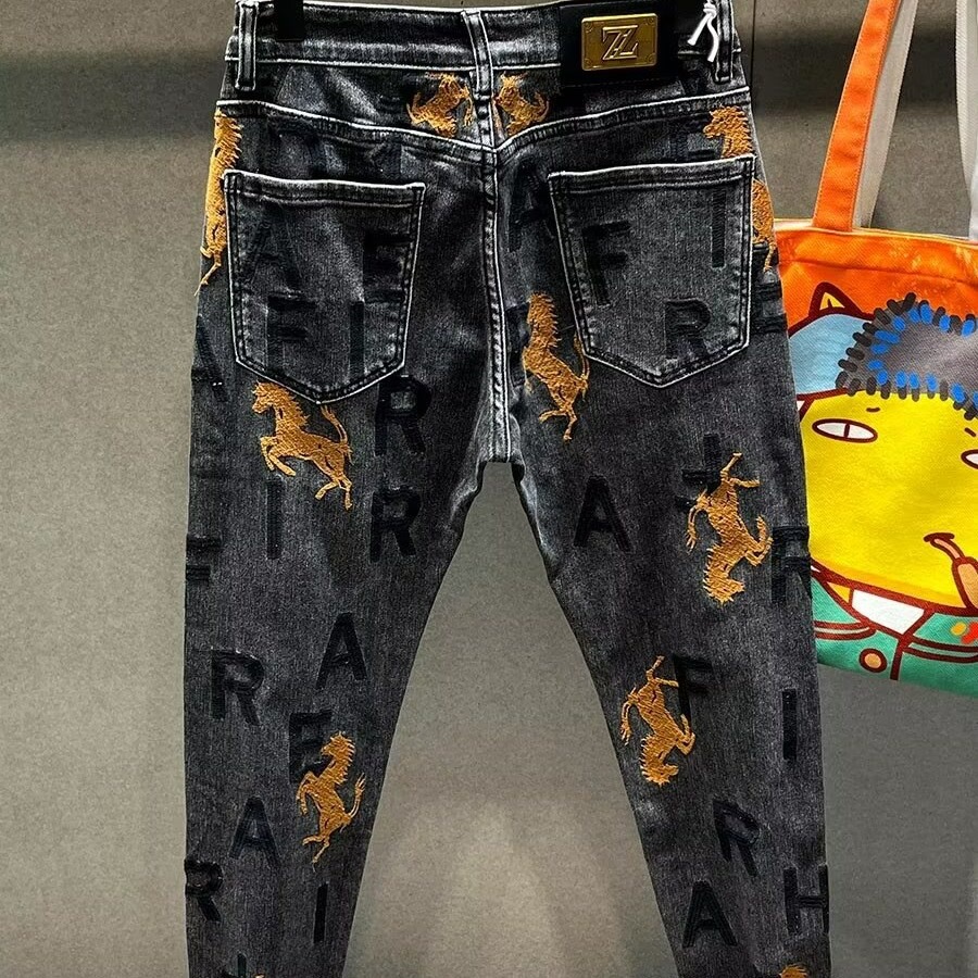 2024新型九分ジーンズ男性レトロ刺繍小ストレートズボン秋アメリカファッションブランドカジュアル長ズボン