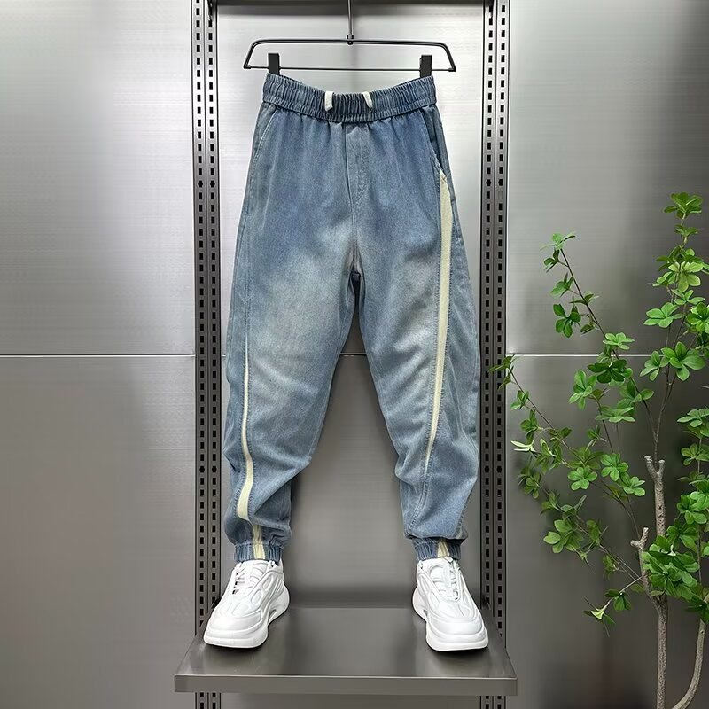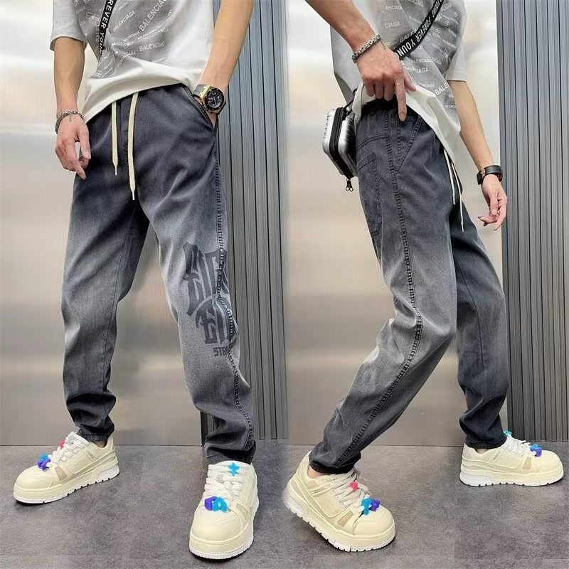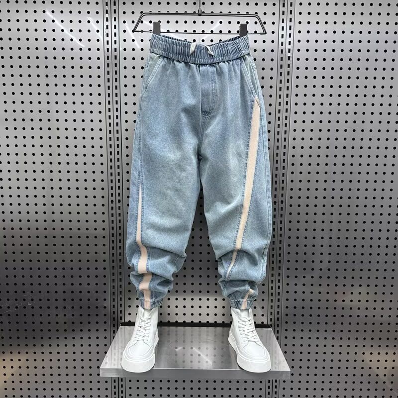 2024夏のジーンズ男性の弾力的なスポーツの足首のズボンのファッションブランドの高級感のごろつきのかっこいいカジュアルなハーレムのズボン
