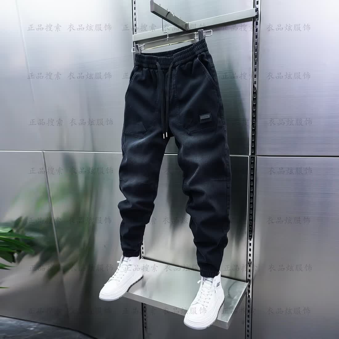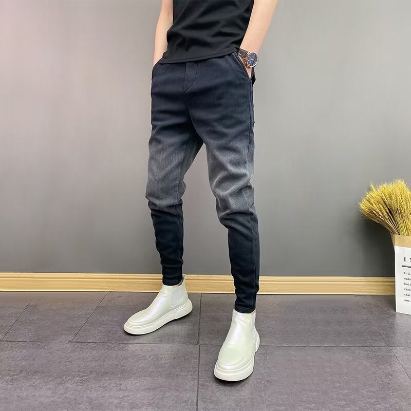 男性の秋の新型グラデーション色のカジュアルパンツは、足のハーレムパンツをつなぎ合わせて、弾力性のあるウエストジーンズを合わせます。