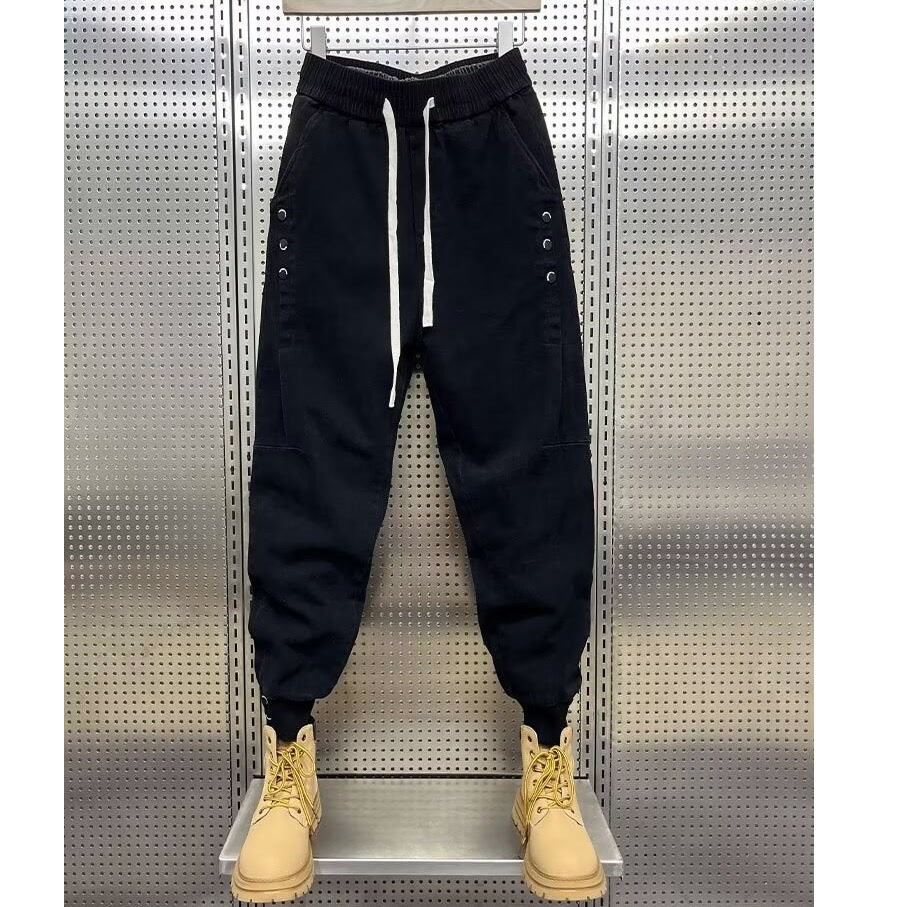 ファッションブランドの秋の新型男性カジュアルパンツの純色ボタンの装飾の足首のズボンの韓国版の弾力性の小さい足のハーレムのズボンの子