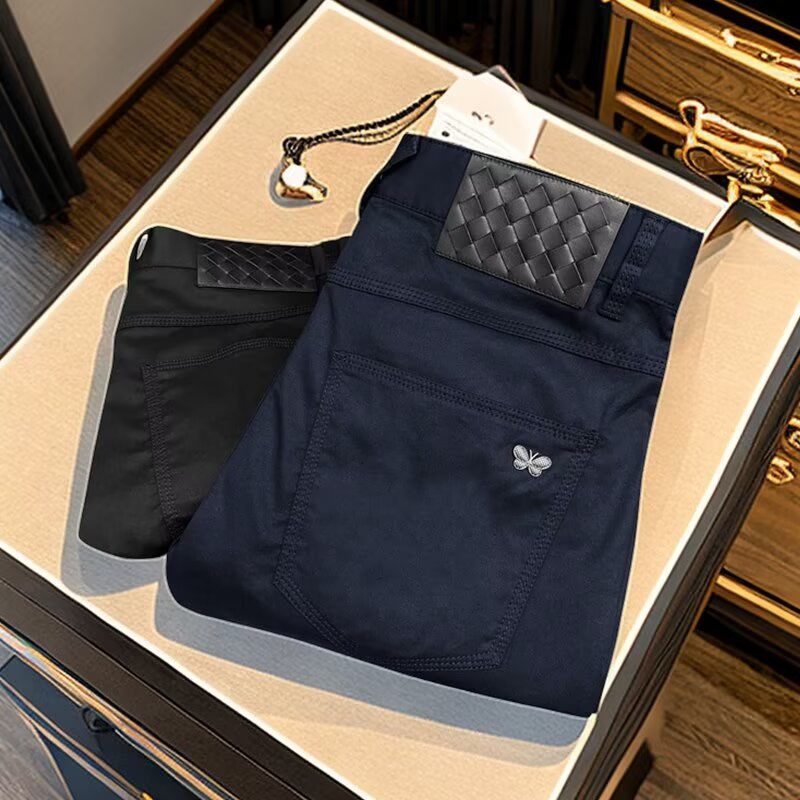 秋の黒いジーパンの男性のハイエンドの軽豪華な百合弾力の冬の修身の小さいストレートのズボン