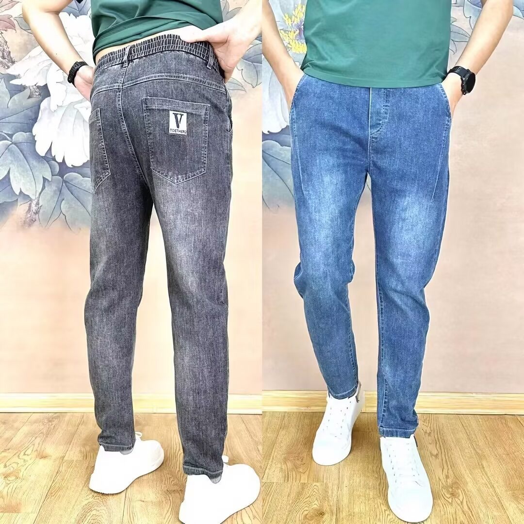 薄手のストレートジーンズ2024夏のゆるいジーンズ男性五分ズボン水洗い中馬ズボン