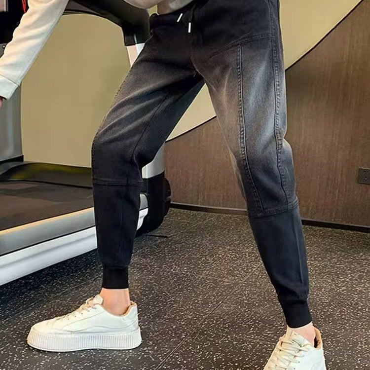 ジーパンの男性の2024新型の薄いタイプの夏の直筒のゆったりしているハーレムのズボンの百合の弾力の韓国版の長いズボンの男性のタイプ