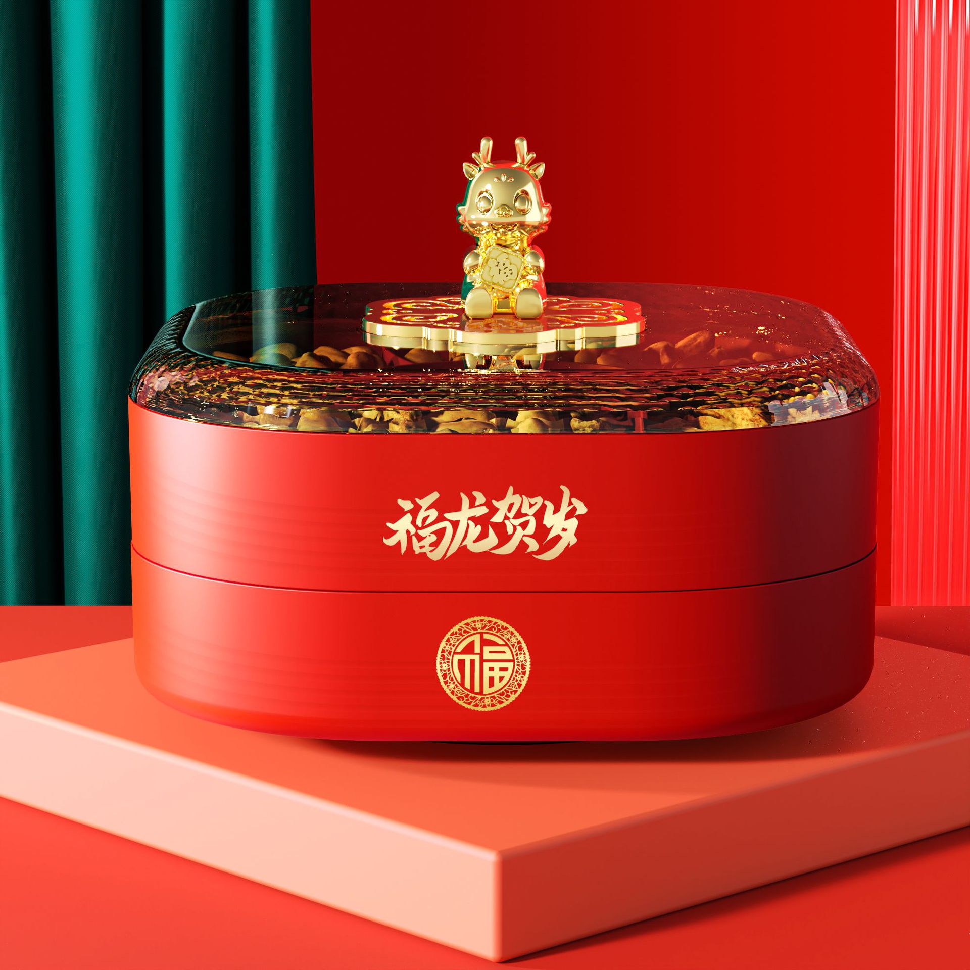 2024年果物皿龍年キャンディー箱家庭用客間角型分格ドライフルーツ皿赤お祝い間食収納箱