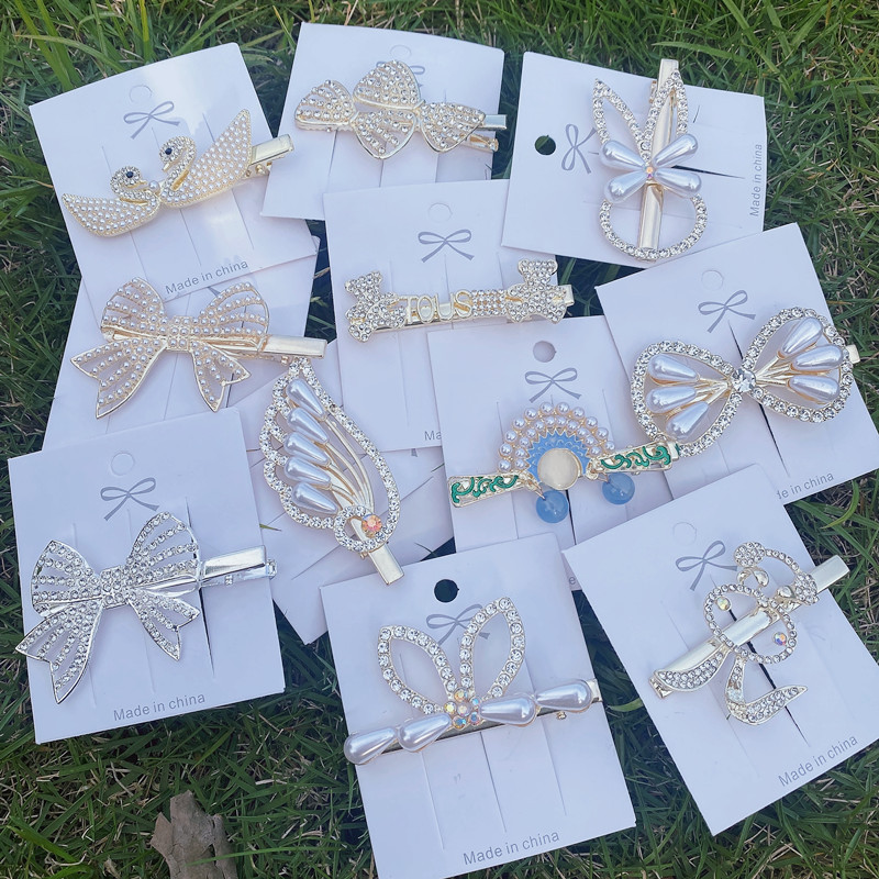 ネット赤重工ヘアクリップ韓国東大門劉海クリップ髪セット小宝飾品真珠女髪飾り震え音爆金
